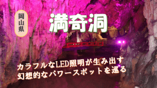 岡山県北部の山間部には、たくさんの鍾乳洞があり、その中の一つには「満奇洞」があります。悠久の時を過ごした美しいつらら石を始め、竜宮城を想像させる地底湖など見どころが多い。カラフルなLED照明が生み出す幻想的なパワースポットを巡りましょう。