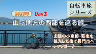 旅の体験談山陰地方の西部を巡る自転車旅、萩市の観光を楽しみ長門市を目指す 山陰地方の西部を巡る旅の3日目は、小京都・山口県萩市の観光から始まります。松陰神社や萩・明倫学舎、萩城跡、萩八景遊覧船を楽しむぞ。萩城下町を巡った後は、自転車で海岸線の林道を抜けながら長門市へ目指す予定ですね。何が待ち受けるのか乞うご期待。 2025.09.27旅の体験談